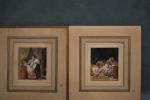 ECOLE FRANCAISE XIXème siècle Scènes libertines Aquarelle, 11.5 x 10 cm