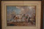 ECOLE FRANCAISE XIXème siècle Les Pisseurs Aquarelle, 18 x 25.5 cm
