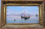 Giuseppe CARELLI (1858-1921) Pêcheurs dans la baie de Capri Huile sur panneau signée en bas à droite et située Capri H. : 20 cm, L. : 36 cm