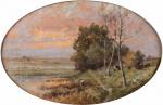 Edouard Michel F. HAMMAN (1850-?) Marécages au soleil couchant Huile sur panneau de bois, signée en bas à droite 18 x 27 cm (ovale)