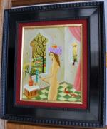 Alain THOMAS (né en 1942) Sultane aux oiseaux Huile sur isorel signé en bas à gauche 27 x 21,5 cm