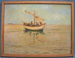 Louis NATTERO (1870-1915) Pêcheurs au soleil couchant Huile sur toile signée en bas à droite 30,5 x 40,5 cm