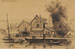 Encre sur papier bistre, signée et datée en bas à gauche. Située en haut à gauche