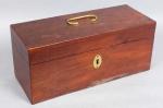 17 - Coffret rectangulaire en placage d'acajou, prise mobile en laiton, ép. milieu XIX'. Long. : 41 cm - Prof. : 16 cm - Haut. : 17 cm