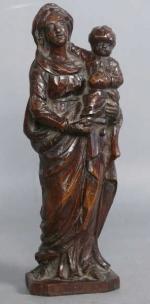 62 - Vierge à l'Enfant en bois naturel sculpté, ép. XVIII' s. Haut. : 25 cm