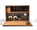 Émetteur-récepteur de la radio télégraphie militaire type E13M, modèle 1919, à 8 lampes dans son coffret en chêne,
