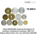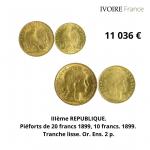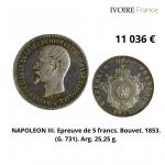 Une ferveur particulière a été suscitée par les ESSAIS, les EPREUVES ou les PIÉFORTS de la collection à l’instar du lot 500, estimé 300/400€ partant à 15 600€ ou de l’essai de 10 francs NAPOLEON III, estimé 1000/1500€ adjugé 15 500€.