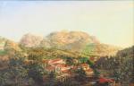 Huile sur toile. Signée au dos. Inscription en rouge au dos de l'œuvre sur une toile "Commande de M. Achilles Louis Bocage, propriétaire de l'hôtel Jourdain à la Tijuca. Tableau peint d'après nature. Effet de Soleil couchant, Avril 1878. Rio de Janeiro (Note de l'auteur N. Facchinetti)
