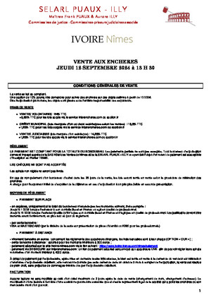 Tout bordereau d’adjudication demeuré impayé auprès de la SAS Hôtel des Ventes de Nîmes et/ou la SELARL PUAUX-ILLY ou ayant fait l’objet d’un retard de paiement est susceptible d’inscription au Fichier TEMIS (Fichier des restrictions d'accès aux ventes aux enchères)