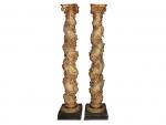 Une paire de colonnes torses en bois sculpté, peint et doré ...