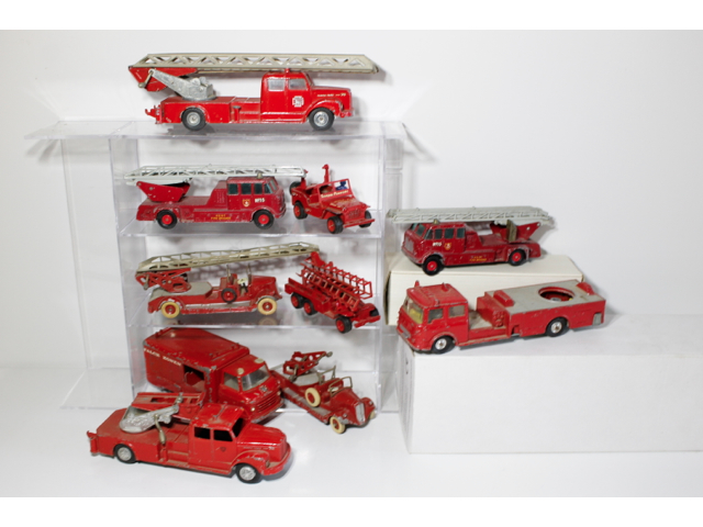 Lot de 10 épaves de camions de pompiers DINKY, TEKNO, LESNEY, SAFIR, CORGI (manques)