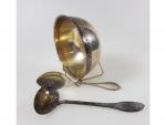 ... à décor de frises - d'une cuillère à glace à décor de rubans noués (trace de vermeil) - et d'une cuillère à bouillie - style Restauration - Poids : 119,8g - petits chocs