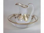 ... médaillons, guirlandes et filets dorés - époque début XIXème - Hauteur du broc: 23,5 - diam cuvette: 32cm - (usures de dorure)