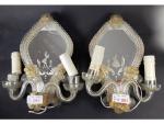 ... verre - support à fond de glace à décor de silhouettes vénitiennes - H : 26cm
