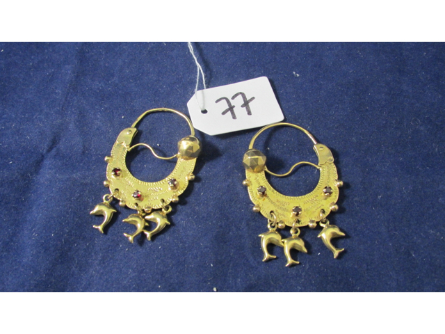 1 paire de boucles or 18 carats avec pierres poids 10,7g