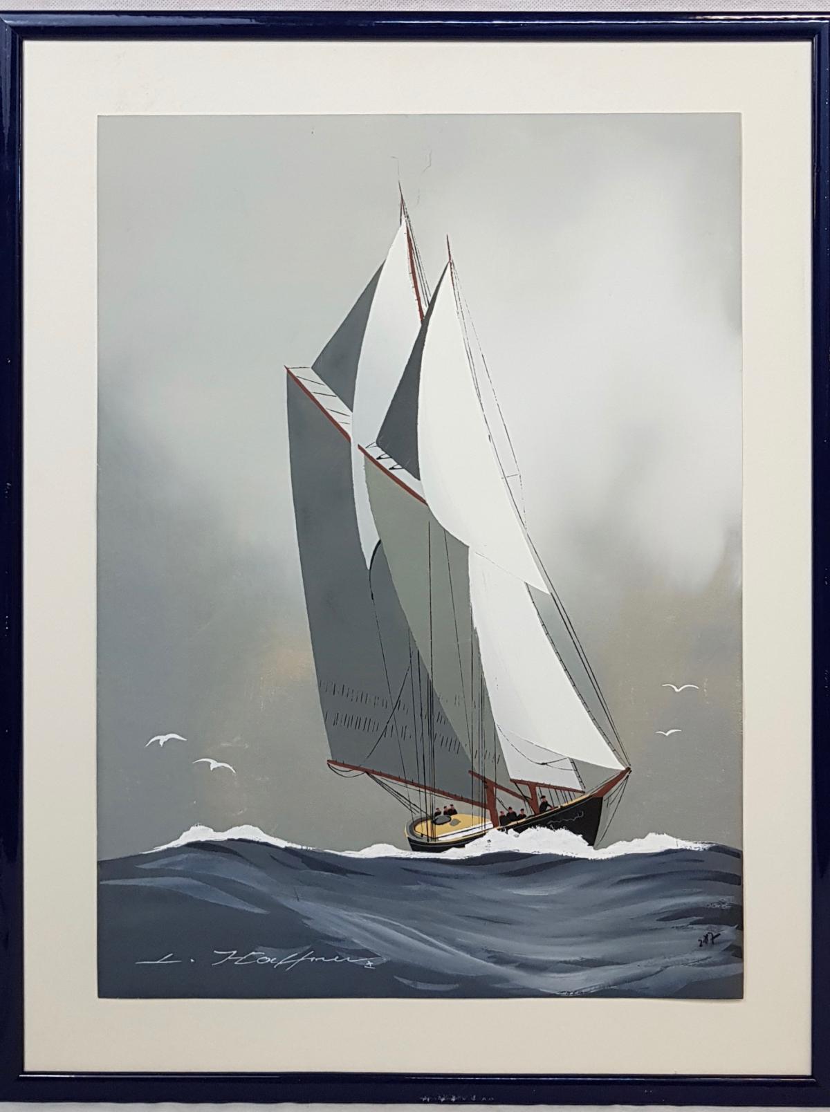 Léon HAFFNER (1881-1972) - "Voilier" - Gouache au pochoir - SBG et numérotée 287 - 44x32cm - Expert Olivier HOUG
