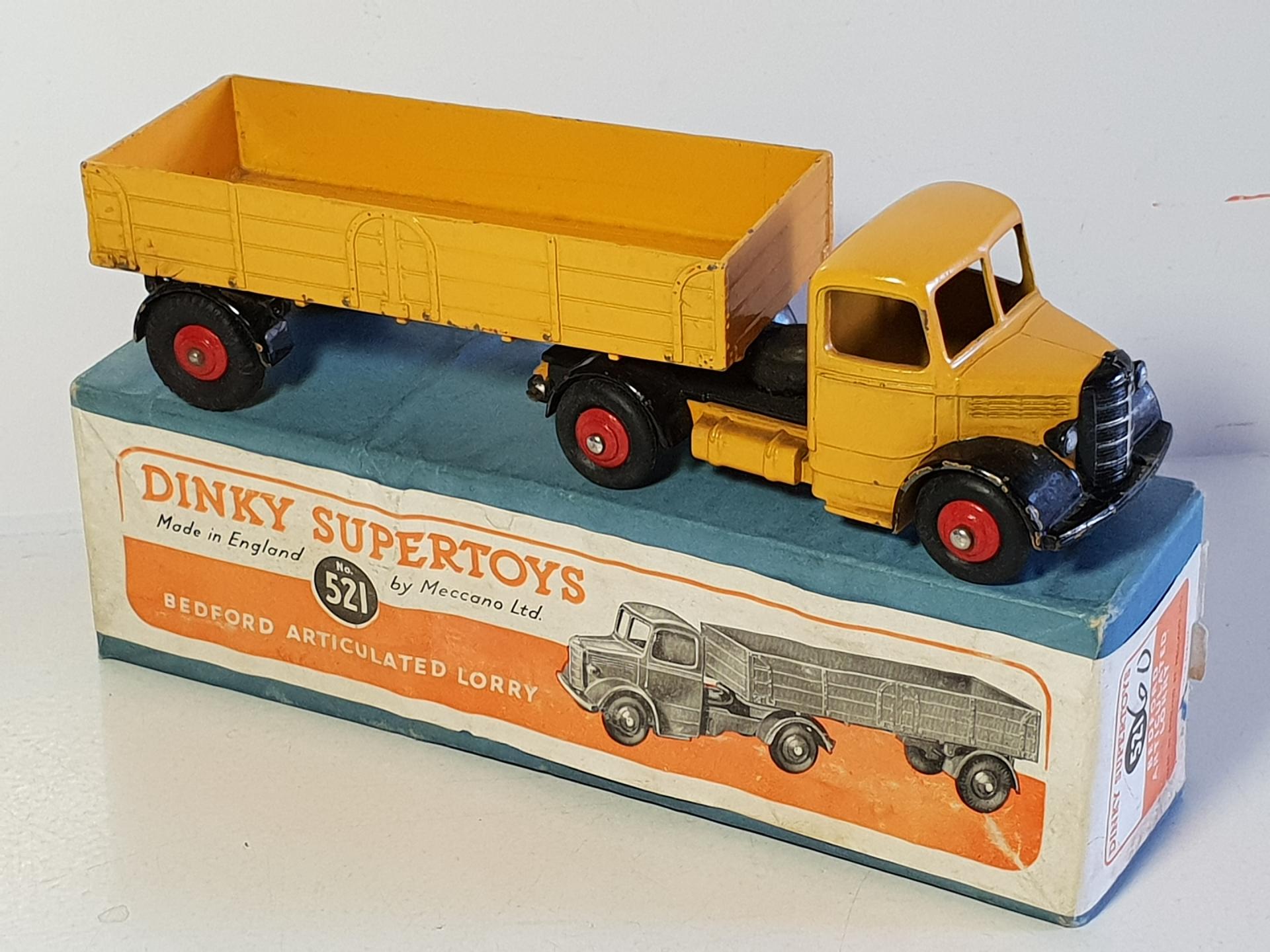 DINKY G.B. réf 521 Bedford « O » semi-remorque jaune d’or/noir B.c (boite gondolée, pneus de la remorque à remplacer)