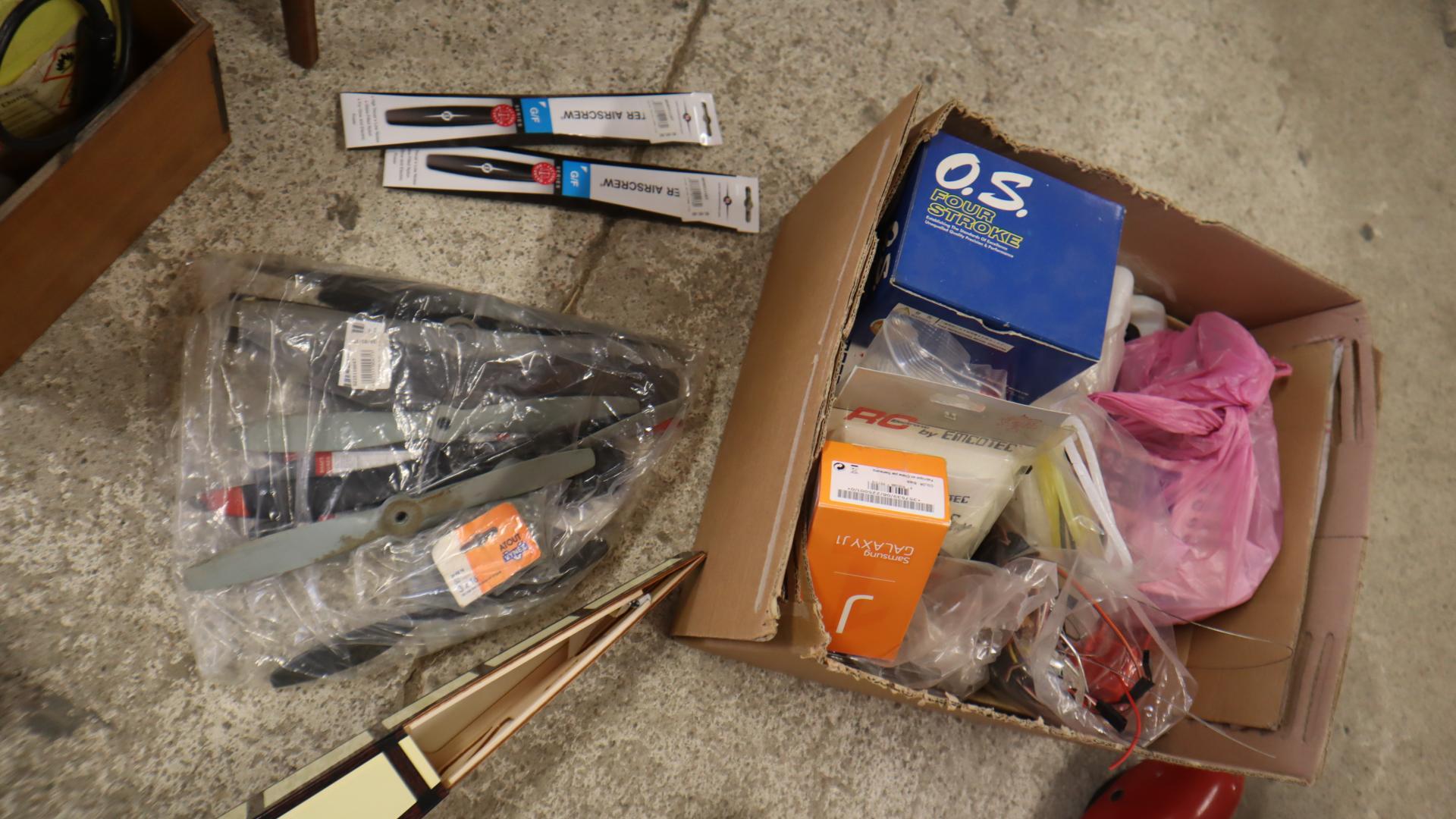 *Un lot de divers éléments d'avions téléguidés, pièces détachées et outillage de modélisme
