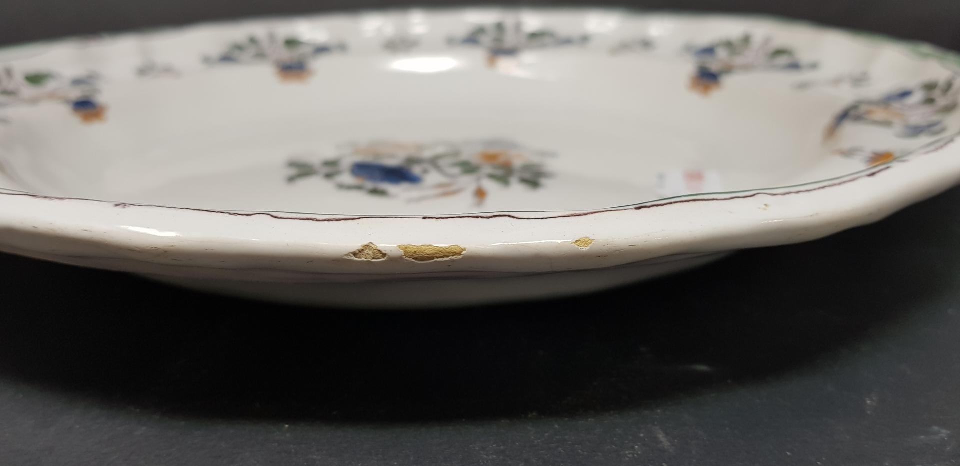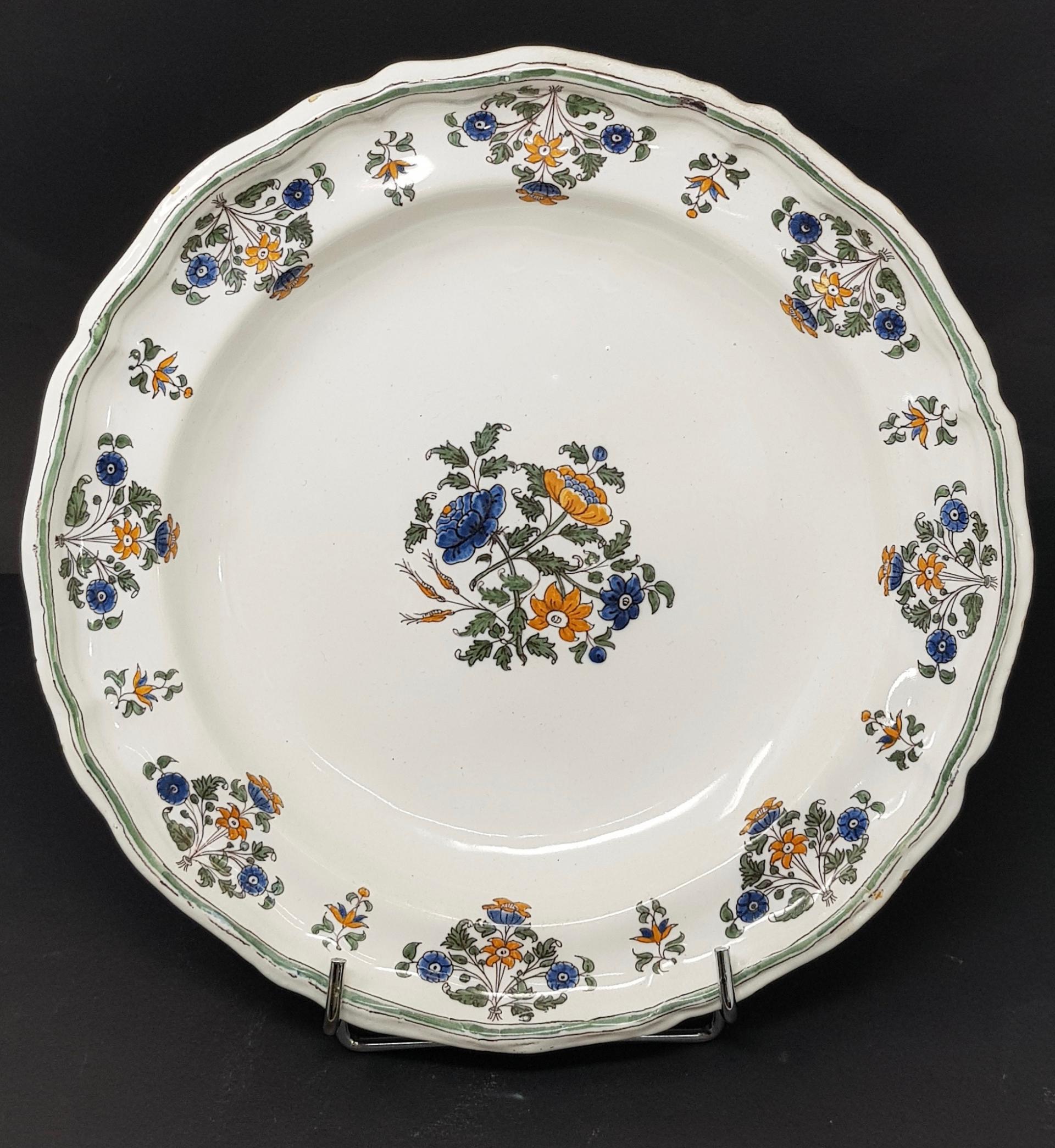 MOUSTIERS - un plat à décor de fleurs de solanée - époque XVIIIème - D: 32cm - petites égrenures en bordure
