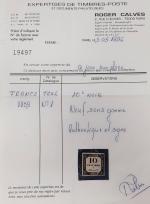 (*) FRANCE TAXE N°1, 10c noir lithographié, sans gomme, signé Brun avec certificat Calves TB