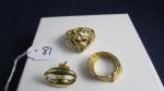 Lot composé de 2 bagues dont une avec pierres et 1 boucle le tout à restaurer or 18 carats Poids brut 18,2g