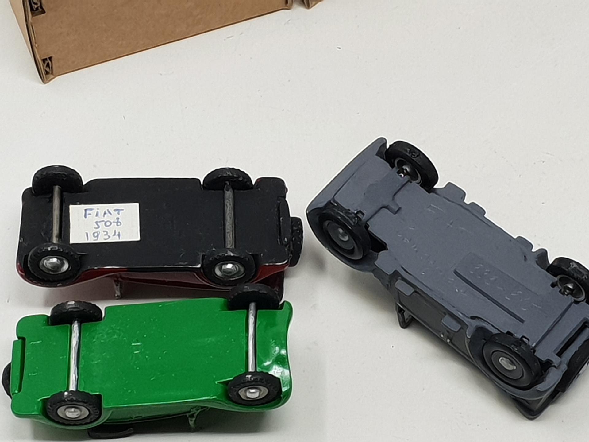 R-MODELLI (Paolo Rampini, 1975 white métal), 3 rare modèles :Fiat 508 torpedo 1934, Fiat 508s...