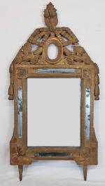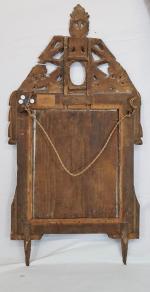 Une glace à parcloses - cadre en bois sculpté et doré - fronton ajouré à décor de rubans noués et médaillon - époque XIXeme - H. 94 cm - L. 49,5 cm - petits accidents et manques
