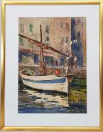 Ecole française XXème - "Bateau à quai" - Aquarelle SBG H. Teisseire-Seren - 34.5x24.5cm