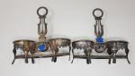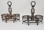 Une paire de porte huiliers en argent - poinçon tête de Minerve dans un rond - H: 18cm - L: 17cm - P: 7cm - poids: 292.9g - légères déformations