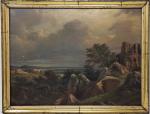 Ecole française XIXème - "Le bord de la Sarre" - H/P - 23x30cm - petites taches