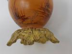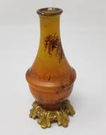 Un vase en verre à décor de paysage signé Auzies, fixé sur un socle en bronze doré - H. 11,5 cm - traces de frottement