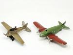 Deux avions en tôle - envergure : 18 et 14cm - petits manques sur l'un