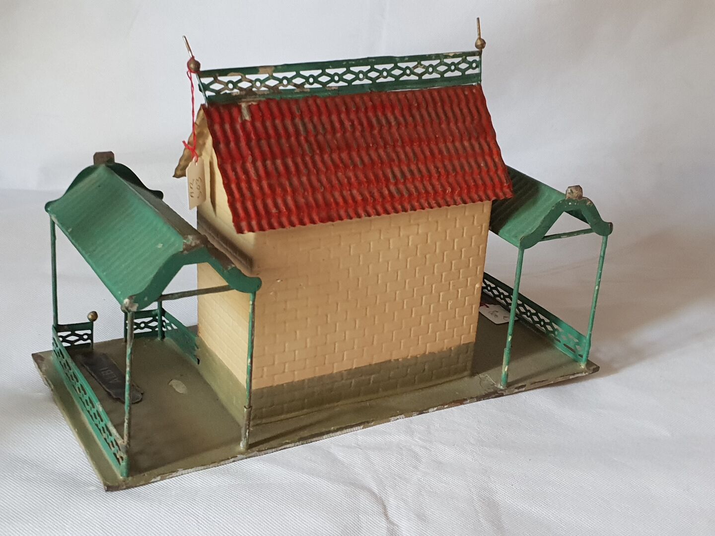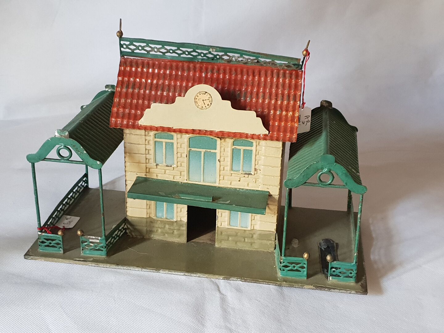 Un ancienne gare en tôle, à restaurer, parties repeintes - 31 x 15 x 21 cm