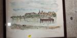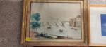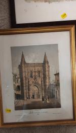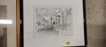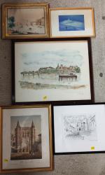 Un lot comprenant une gouache sur papier représentant le Pont d'Avignon dans le goût du XIXème (18x25,5 cm à vue) une lithographie et deux reproductions représentant des monuments d'Avignon (Eglise Saint-Pierre, Eglise Saint-Agricol, Pont Saint-Benezet) et une reproduction représentant le Mont Ventoux (formats divers)