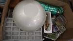 Un lot de quatre cartons comprenant coffret à bijoux et montres (vides), accessoires de bureau, petits appareils électroménagers électriques, petites fournitures de cuisine et loisir , et divers