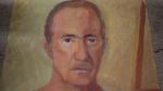 ALBALA - Ecole XXème - Autoportrait au chevalet - huile sur carton à peindre SBD - 55 x 46 cm - support gondolé