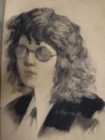 Portrait de femme aux lunettes noires - dessin - 40 x 30 cm