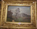 A. TAVERNIER : Scène champêtre - huile sur carton signée et datée 1906 en bas à droite - 20 x 26 cm