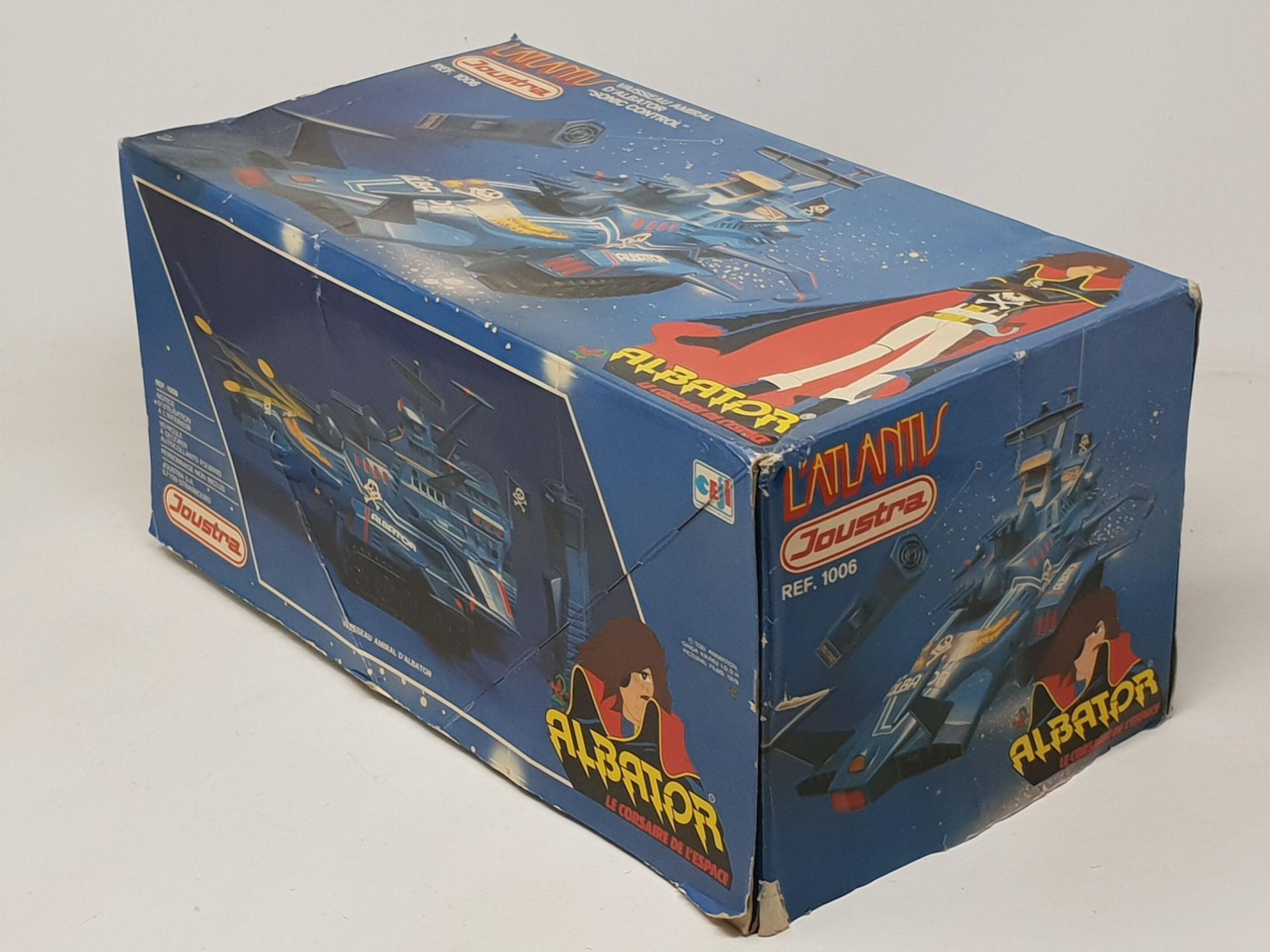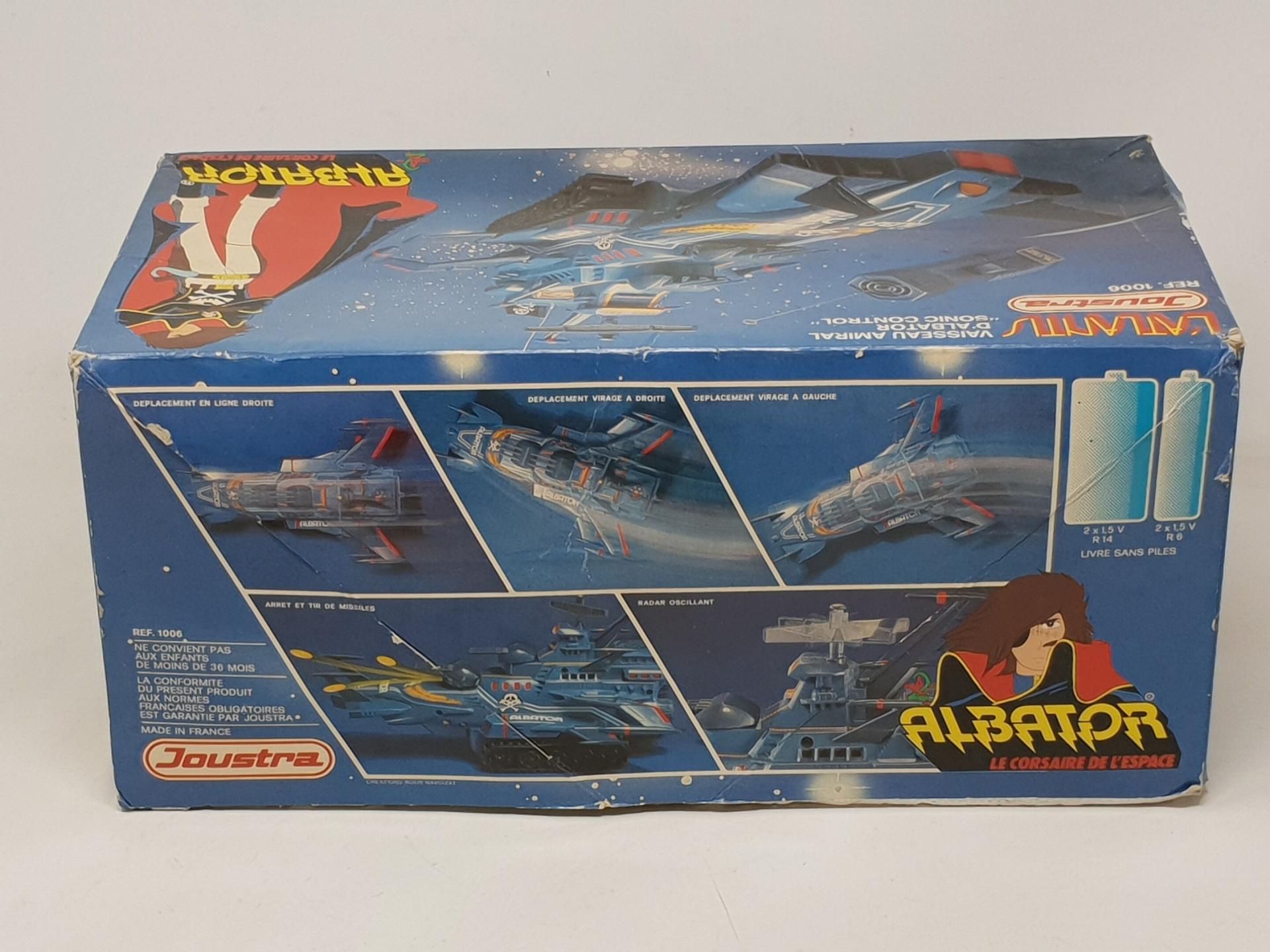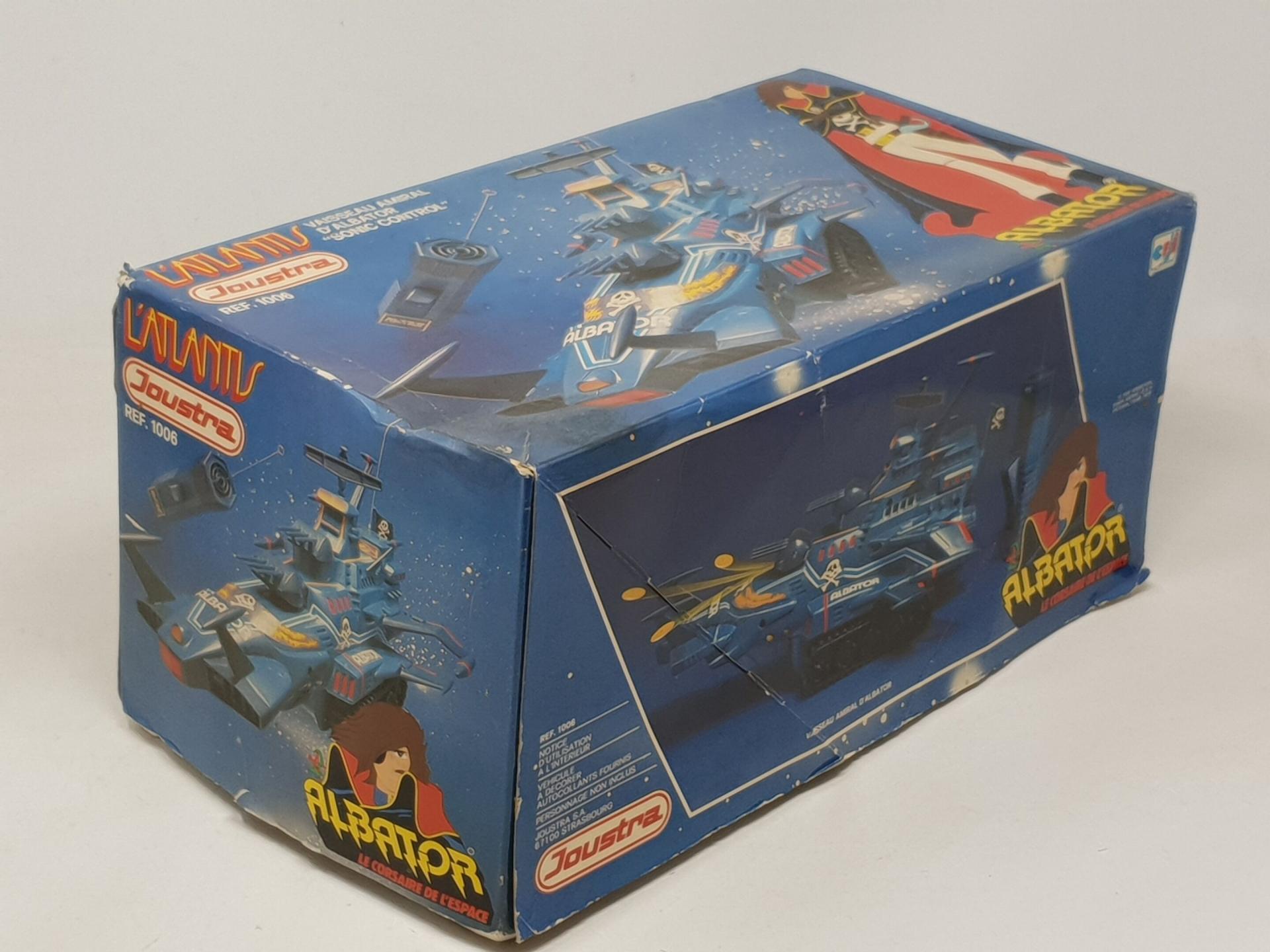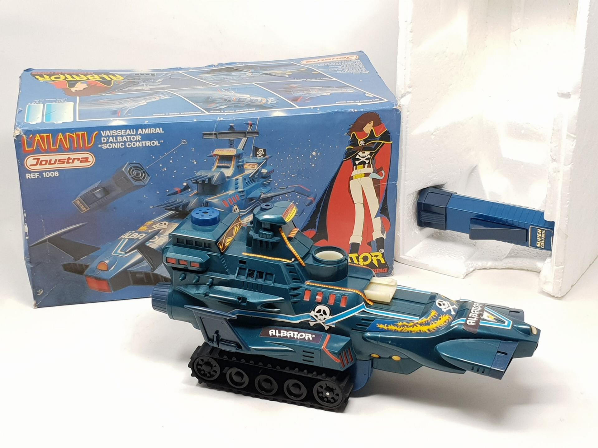 ALBATOR Le Corsaire de l'Espace, Made in France par JOUSTRA : char-vaisseau L'ATLANTIS , électrique à piles (contacts oxydés), L : 31 cm, complet de ses 16 missiles disquoïdes, des ses accessoires amovibles et de son boitier de contrôle (non-testé) - C8 - B7 (un collage à prevoir sur l'aileron pliable gauche) - rare pièce