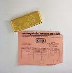 Lingot d'or avec son bulletin d'essai Compagnie des métaux précieux - n°743.672 - Poids brut : 999.6 - titre or 996.6 - poids d'or fin 996.2