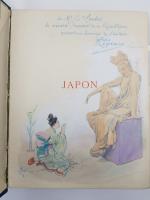 REGAMEY (Felix) - JAPON, Paris, Paclot, sd, in-4 de 306 pages, relié, plats en tissus, couvertures conservées, ex-dono de l'auteur « à Mr Emile LOUBET, le vénéré Président de la République, respectueux hommage de l'auteur, signature, juin 1905 », exemplaire N°10 sur papier des Manufactures Impériales du Japon, avec un dessin polychrome original de l'auteur sur le faux-titre, 394 illustrations dont 11 en couleurs