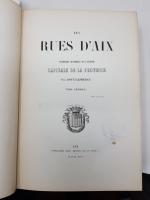 ROUX-ALPHERAN - Les Rues d'Aix ou recherches historiques sur l'ancienne capitale de la Provence, Aix, Aubin, 1846, 2 volumes in-8 de 664 et 558 pages, reliés demi-maroquin, dos décoré de fleurons, les reliures sont légèrement usagées, ancien cachet de bibliothèque en partie effacé, 12 planches, sans le plan comme presque toujours