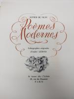 VIGNY De (Alfred) - Poèmes modernes, lithographies originales d'André LEBOIS, Paris, Chez l'Artiste, 1944, in-8 carré en feuilles de 130 pages, exemplaire numéroté sur Vélin d'Arches, sous couverture et étui éditeur