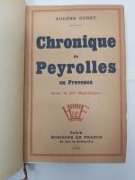 CURET (Eugène) - Chronique de PEYROLLES en Provence (sous la IIIe République), Paris, Horizons de France, 1930, in-12 de 215 pages, relié demi-basane, dos à nerfs, couverture conservée, exemplaire numéroté