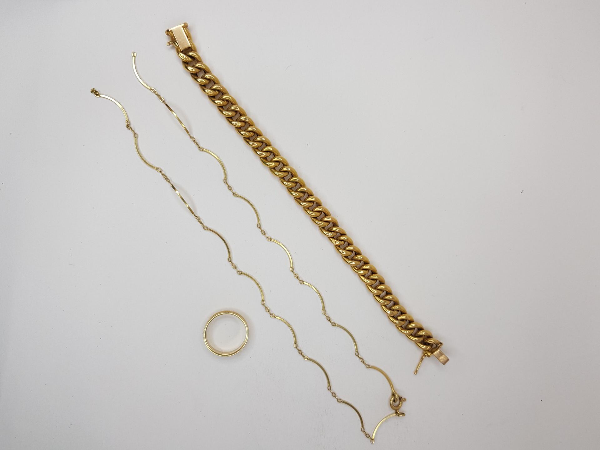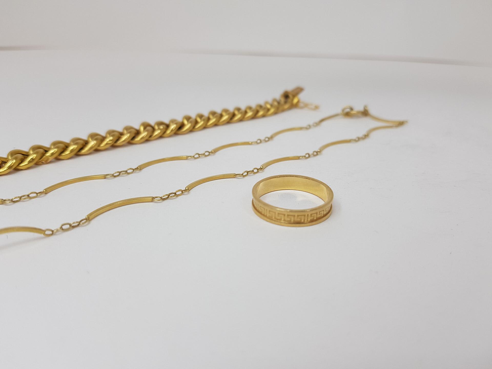 Bague - TDD 53 - 1 bracelet longueur 19cm environ (chocs) et tour de cou cassé - or 750e - Poids 18g3