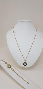 Chaine avec 1 pendentif pierres - Longueur 46cm environ et 1 bracelet souple avec pierres - Longueur 17cm environ - or 750e - Poids brut 8g2