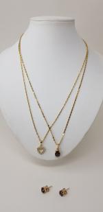 2 Chaînes maillons à restaurer, paire de vis avec fermoir à restaurer avec pierres, et 2 pendentifs avec pierres or 750° poids brut 13,3g