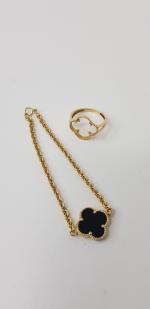 Bague chaton vide et 1 bracelet souple avec pierre 17,5cm env or 750° poids brut 5,8g