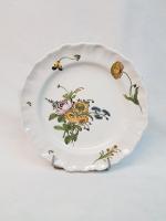 MOUSTIERS ou VARAGES - Assiette en faïence à décor floral de grand feu - XVIIIème - D. 25.5 cm - (petits éclats)