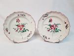 MOUSTIERS - Deux assiettes en faïence à décor floral de petits feux - XVIIIème - (coup de feu sur une et légères égrenures)